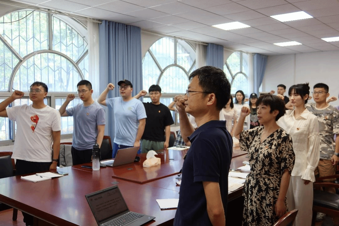 在支部主题党日活动中,全体党员重温入党誓词、报告6月份党费收缴情况、诵读党章,集中研学习近平总书记在二十届中央政治局第四次集体学习、二十届中央国家安全委员会第一次会议以及二十届中共中央政治局第五次集体学习的重要讲话精神,习近平总书记在文化传承发展座谈会、在河北考察并主持召开深入推进京津冀协同发展座谈会以及在听取陕西省委和省政府工作汇报时的讲话精神,习近平总书记给参与“澳门科学一号”卫星研制的澳门科技大学师生代表的重要回信精神,习近平总书记关于《中国式现代化是中国共产党领导的社会主义现代化》重要文章。