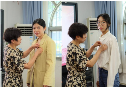 最后,由支部大会讨论接收曾茵婷、雷玉玲两位为预备党员。两位同志汇报对党的认识、入党动机、本人履历、家庭和主要社会关系等情况,以及需向党组织说明的问题,入党介绍人介绍发展对象,支部委员会报告对两位同志审查的情况。与会党员发表意见,并采取无记名投票方式进行表决同意接收曾茵婷、雷玉玲两位同志为预备党员。两位同志表态,会以先进为标尺,想问题、做事情,牢记党员义务,忠于党的事业,坚持群众路线树立集体观念,增强服从意识,吃苦在前,任劳任怨,为党的事业奋斗终生。最后由唐定老师为其佩戴党员徽章。