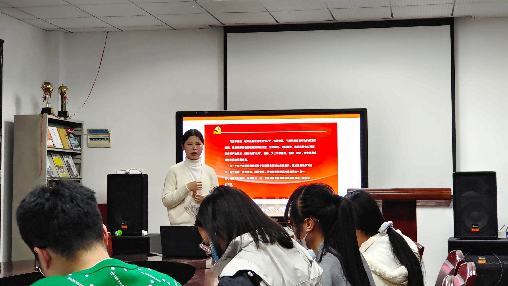 古欣悦同学从习近平总书记在中共中央政治局民主生活会上的重要讲话精神切入,带领同学们学习,提出要增强“四个意识”、坚定“四个自信”、做到“两个维护”的实际行动上。在学习习近平在学习贯彻党的二十大精神研讨班开班式上发表重要讲话精神时,同学们进一步深化对中国式现代化的内涵和本质的认识,对中国式现代化的中国特色、本质要求和重大原则的了解。学习习近平总书记在二十届中央纪委二次全会上的重要讲话精神,同学们了解到每一个共产党员特别是领导干部都要牢固树立党章意识,更加自觉地学习党章、遵守党章、贯彻党章、维护党章,用党章党规党纪约束自己的一言一行,增强纪律意识、规矩意识,进一步养成在受监督和约束的环境中工作生活的习惯。古欣悦同学以粮食安全为切入点引出习近平出席在中央农村工作会议所强调:全面推进乡村振兴、加快建设农业强国,是党中央着眼全面建成社会主义现代化强国作出的战略部署。强国必先强农,农强方能国强。