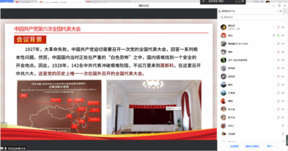 2022级党员季欣带领大家回顾了中共六大党史,中共六大是在大革命失败的背景下,中国共产党迫切需要召开一次党的全国代表大会,回答一系列根本性问题。大会在莫斯科召开,这是党的历史上唯一一次在国外召开的全国代表大会。大会通过了关于政治、军事、组织、苏维埃政权、农民和土地等问题的决议,以及经过修改的《中国共产党章程》。
