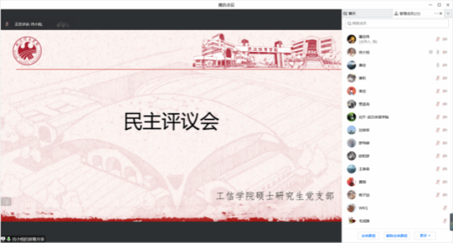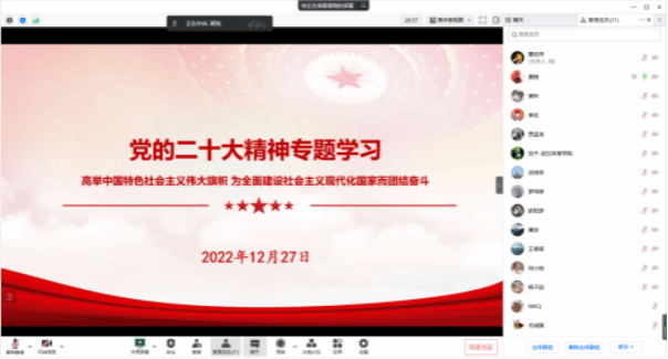 新闻网训(通讯员彭清政)工信学院硕士研究生党支部于12月27日下午2点30分在线上通过腾讯会议开展了12月主题党日活动,支部全体党员和学院入党积极分子参加了学习。本次活动由支部书记唐定老师主持。