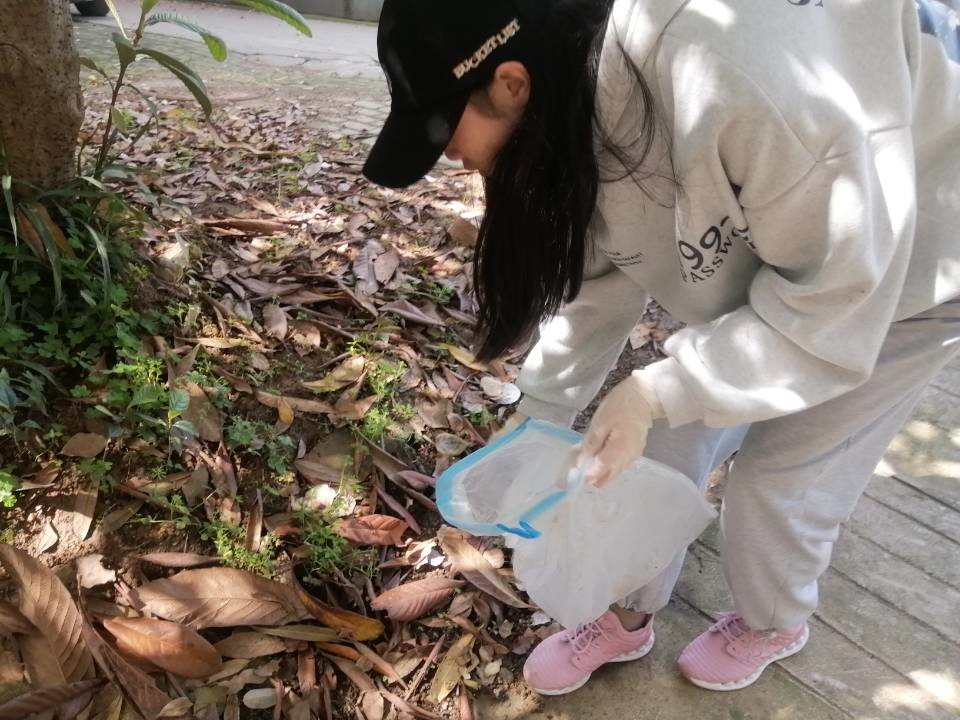 志愿者们在家属区清理这平日里容易忽视的犄角旮旯,同时对拾捡到的垃圾进行分类。将不容易降解的白色垃圾分拣出来。志愿者们不仅在居民楼“大展身手”一番,也在东湖边“斩露头角”。
