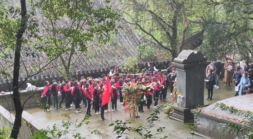 在返程的路上,支部党员代表和青协志愿者还碰上了一群同样前来祭扫的小学生。两排整整齐齐的优秀少先队员们系着鲜艳的红领巾,怀捧鲜花向着我们打扫完的陵墓走去。此刻,追悼烈士英雄活动变得更有意义,既能学习上一辈人的优秀精神,又能给祖国的未来做榜样。
