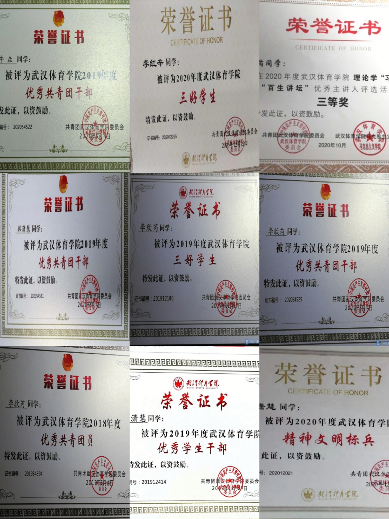 8. 在2020年度武汉体育学院“理论学习我来讲——百生讲坛”活力团支部评选活动中获得三等奖。