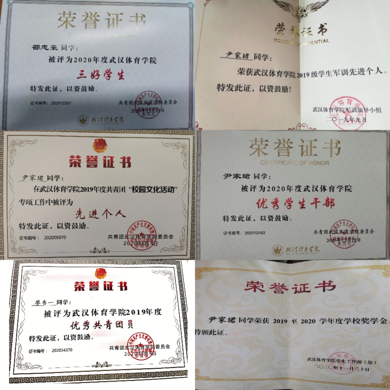 9. 1人获得武汉体育学院2019年度共青团“校园文化活动”先进个人
