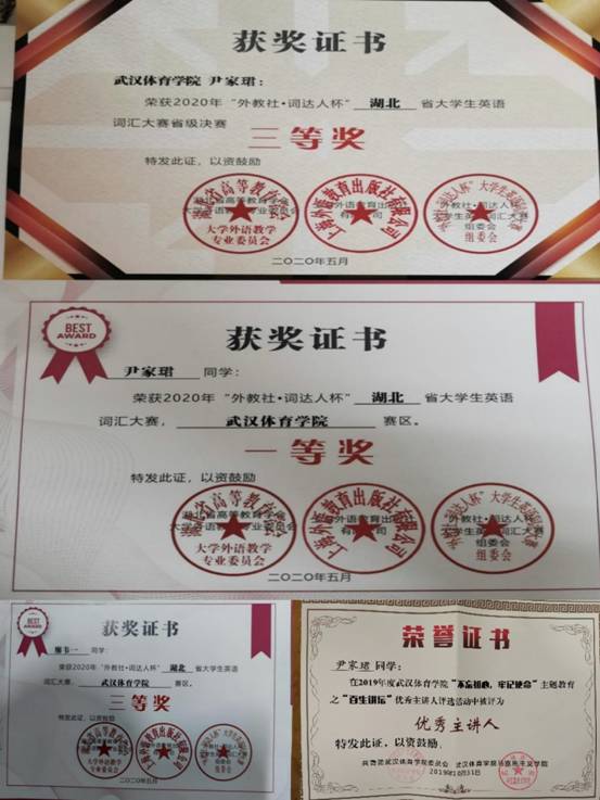 3. 在2020年度武汉体育学院“理论学习我来讲——百生讲坛”活力团支部评选活动中获得三等奖。