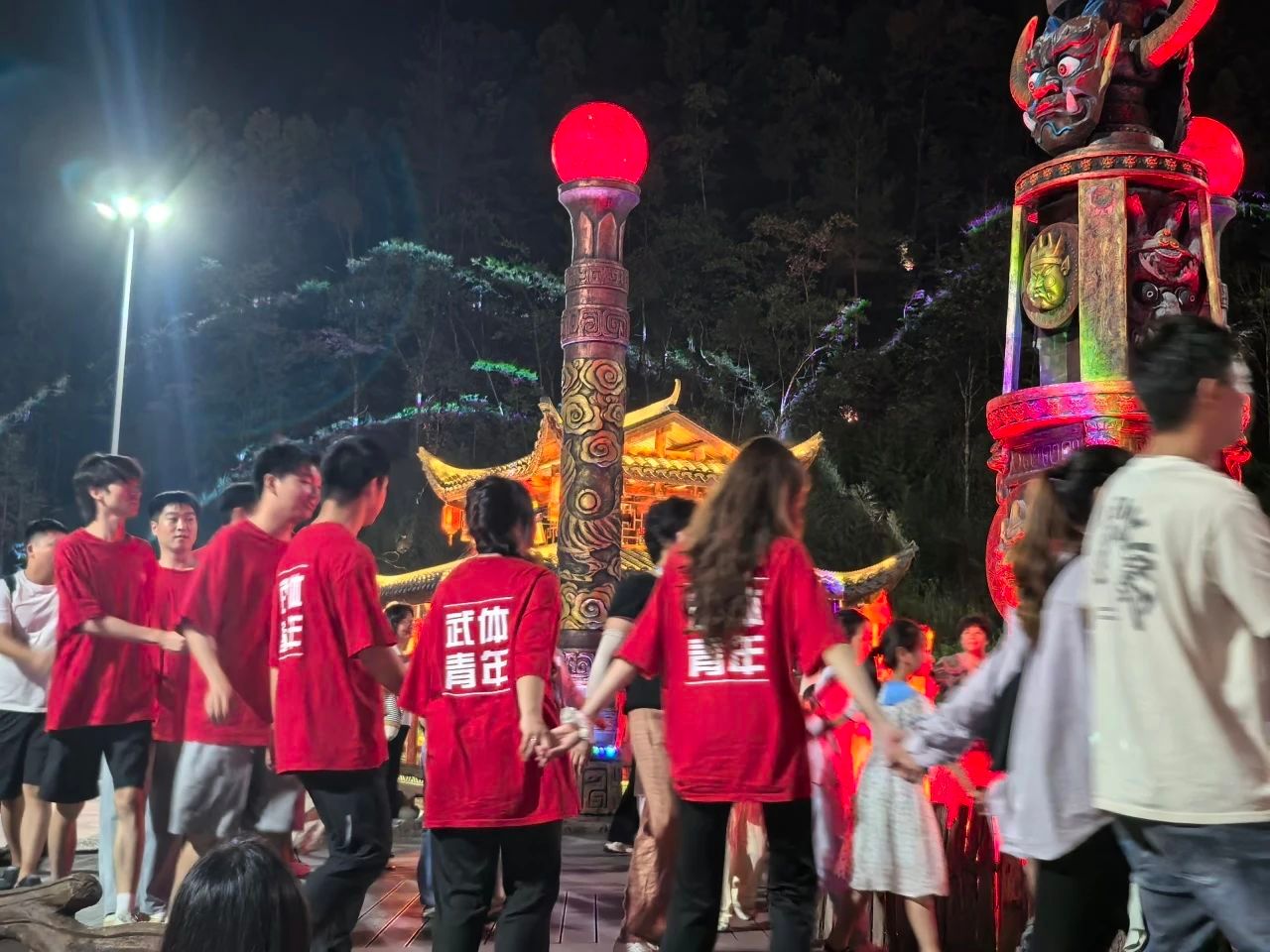 当晚,实践队在当地人的介绍下,来到了土家族聚集地,在当地土家族领队的带领下与少数民族同胞共跳摆手舞。在民族舞蹈的律动中增进情感认同,以文化共鸣凝聚起“中华民族一家亲”的团结力量。